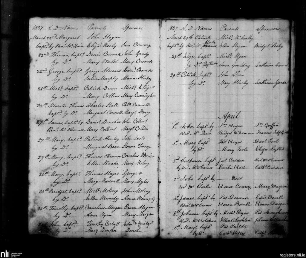 St. John's, Limerick city; County of Limerick; Diocese of Limerick. Baptisms, Mar. 1837 to Apr. 1837
