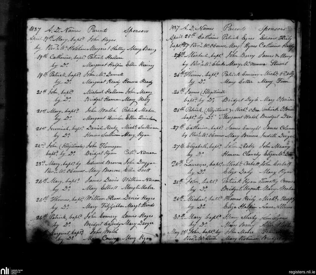 St. John's, Limerick city; County of Limerick; Diocese of Limerick. Baptisms, Apr. 1837 to May 1837