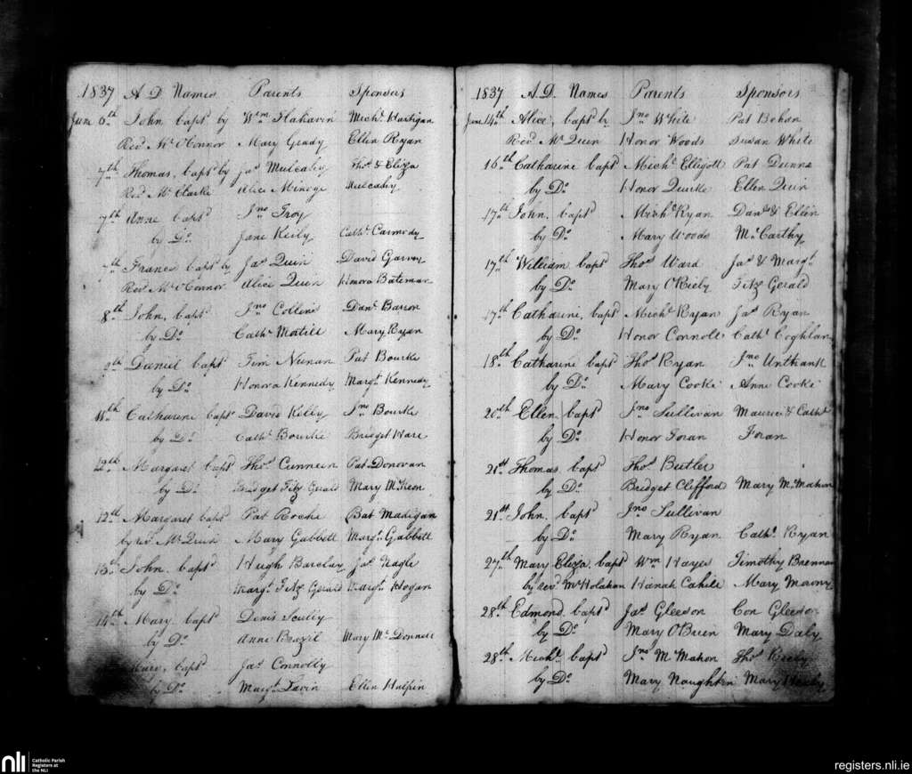 St. John's, Limerick city; County of Limerick; Diocese of Limerick. Baptisms, June 1837