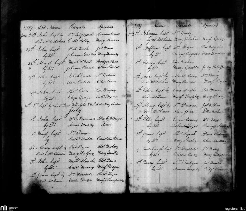 St. John's, Limerick city; County of Limerick; Diocese of Limerick. Baptisms, June 1837 to July 1837