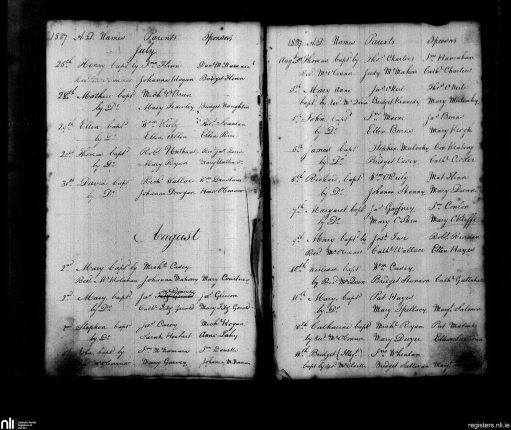 St. John's, Limerick city; County of Limerick; Diocese of Limerick. Baptisms, July 1837 to Aug. 1837