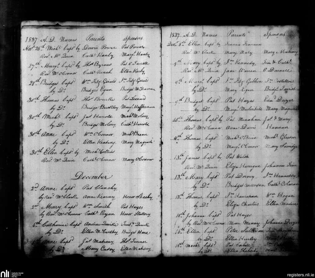 St. John's, Limerick city; County of Limerick; Diocese of Limerick. Baptisms, Nov. 1837 to Dec. 1837