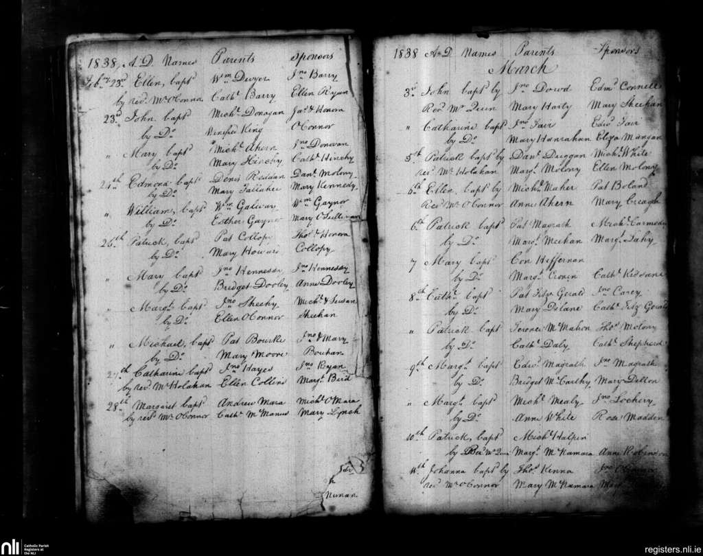 St. John's, Limerick city; County of Limerick; Diocese of Limerick. Baptisms, Feb. 1838 to Mar. 1838