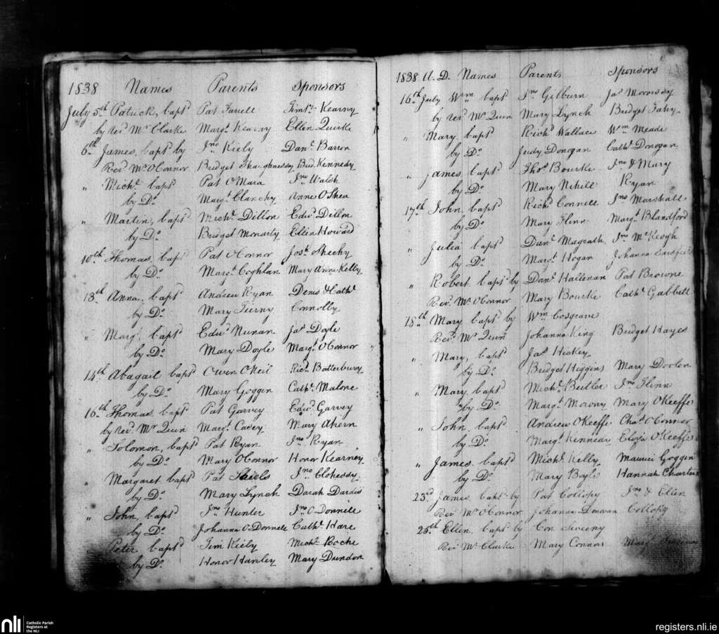 St. John's, Limerick city; County of Limerick; Diocese of Limerick. Baptisms, July 1838