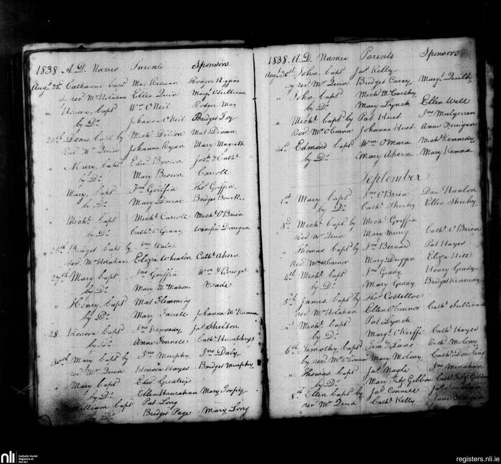 St. John's, Limerick city; County of Limerick; Diocese of Limerick. Baptisms, Aug. 1838 to Sep. 1838