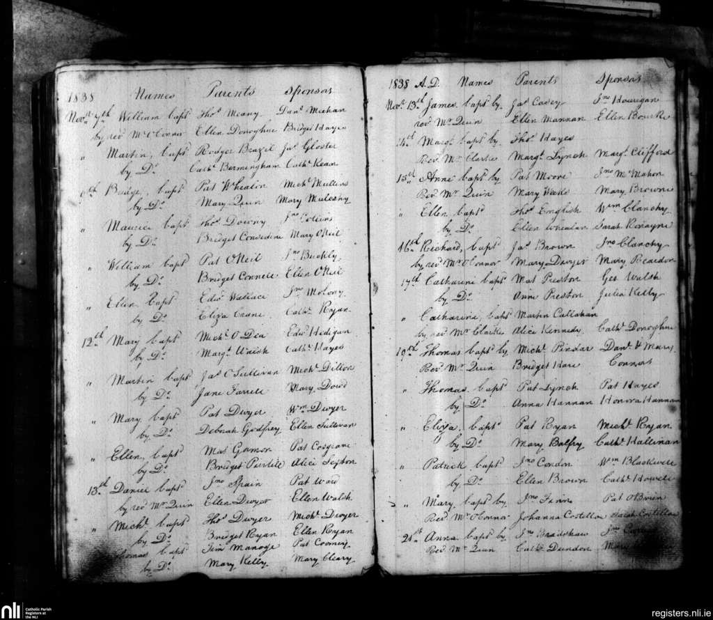 St. John's, Limerick city; County of Limerick; Diocese of Limerick. Baptisms, Nov. 1838