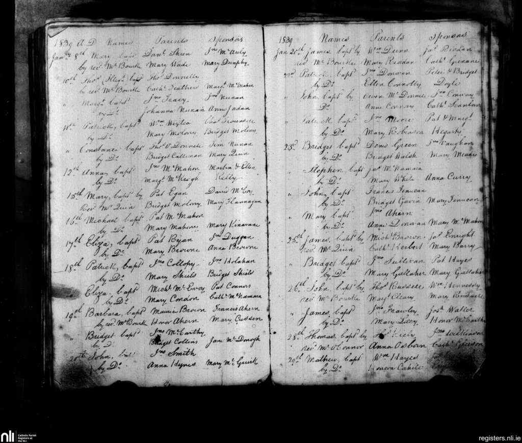 St. John's, Limerick city; County of Limerick; Diocese of Limerick. Baptisms, Jan. 1839