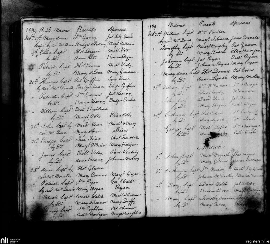St. John's, Limerick city; County of Limerick; Diocese of Limerick. Baptisms, Feb. 1839 to Mar. 1839