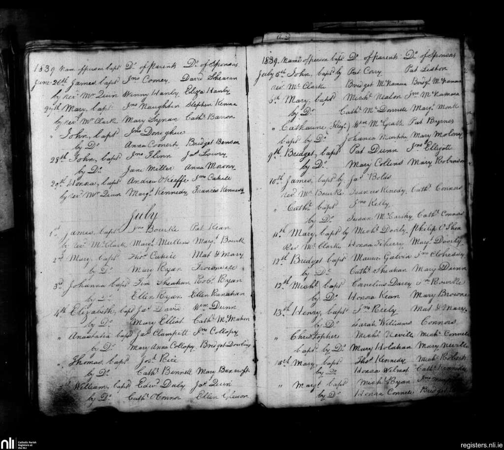 St. John's, Limerick city; County of Limerick; Diocese of Limerick. Baptisms, June 1839 to July 1839