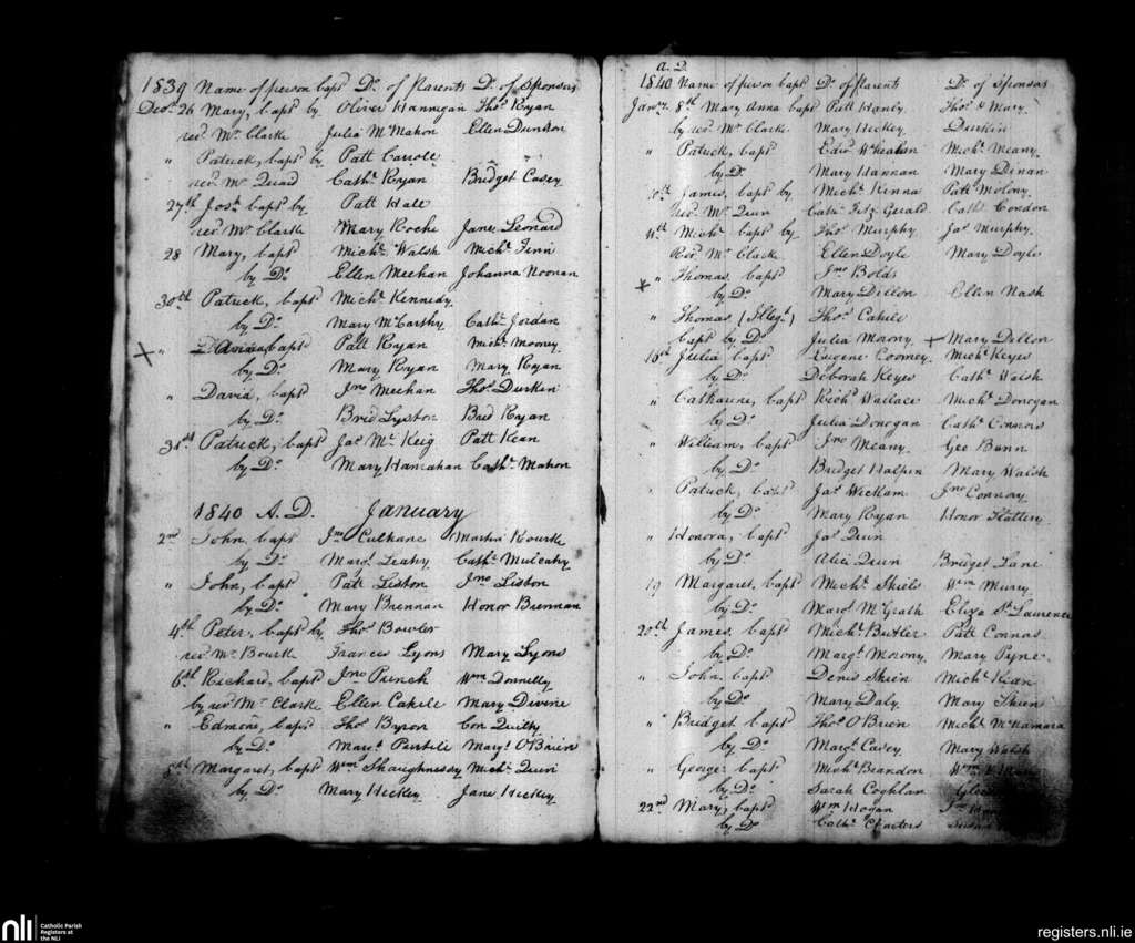 St. John's, Limerick city; County of Limerick; Diocese of Limerick. Baptisms, Dec. 1839 to Jan. 1840