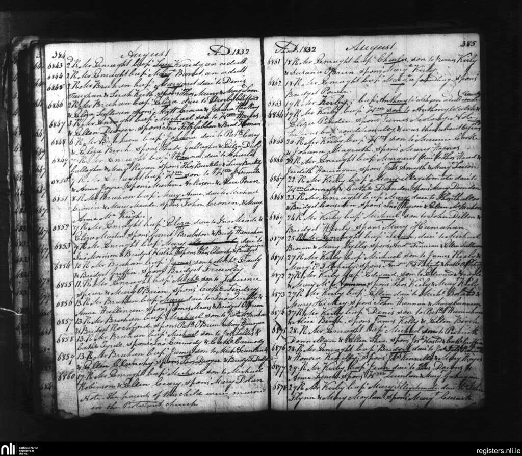 St. Mary's, Limerick city; County of Limerick; Diocese of Limerick. Baptisms, Aug. 1832