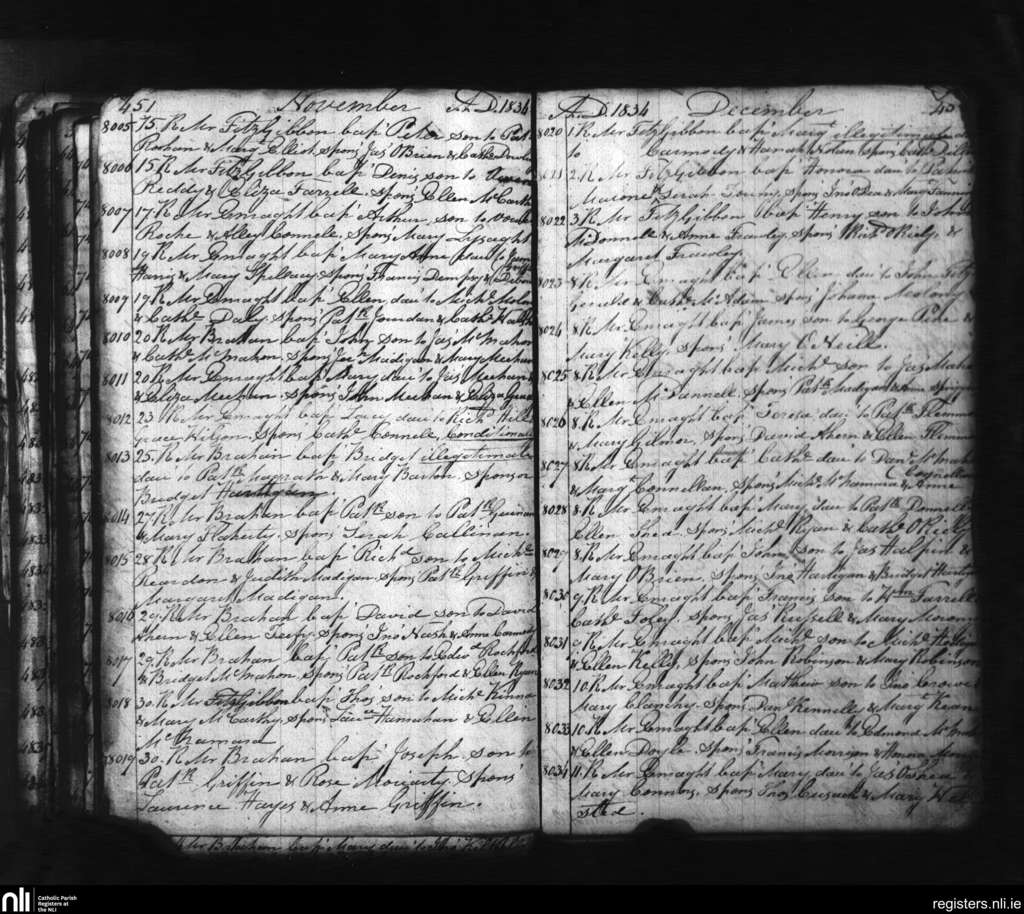 St. Mary's, Limerick city; County of Limerick; Diocese of Limerick. Baptisms, Nov. 1834 to Dec. 1834
