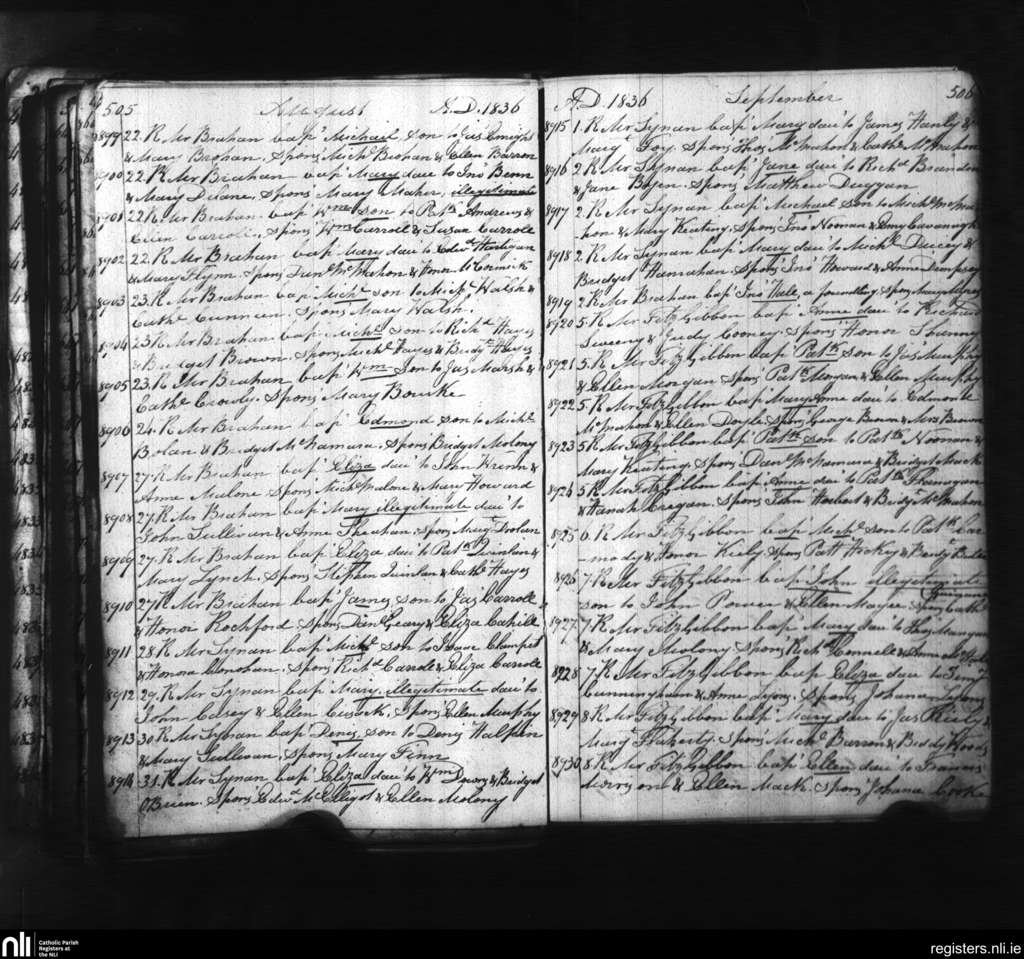St. Mary's, Limerick city; County of Limerick; Diocese of Limerick. Baptisms, Aug. 1836 to Sep. 1836