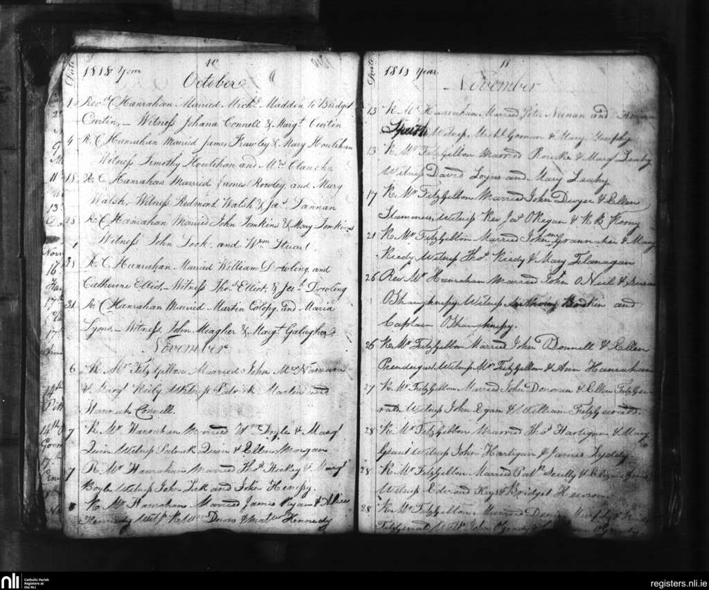 St. Mary's, Limerick city; County of Limerick; Diocese of Limerick. Marriages, Oct. 1818 to Nov. 1818