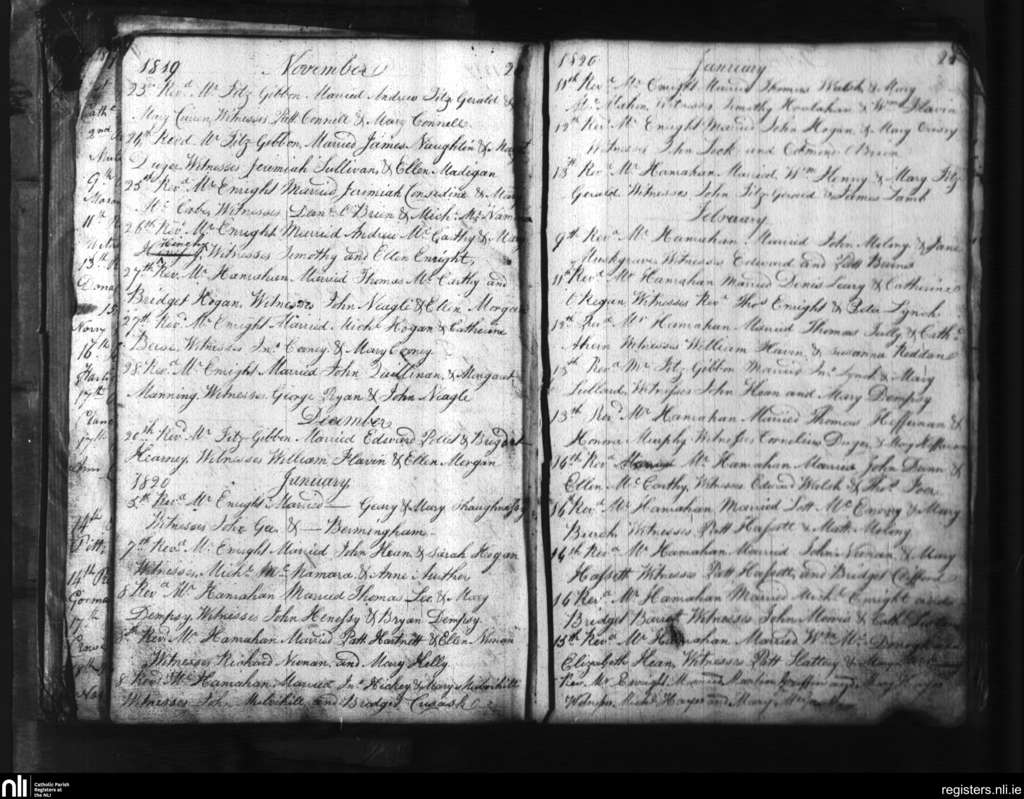 St. Mary's, Limerick city; County of Limerick; Diocese of Limerick. Marriages, Nov. 1819 to Feb. 1820