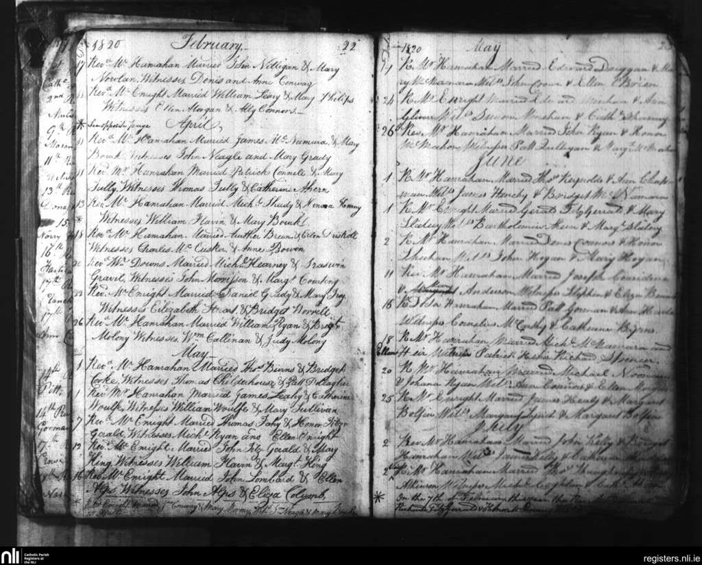 St. Mary's, Limerick city; County of Limerick; Diocese of Limerick. Marriages, Feb. 1820 to July 1820