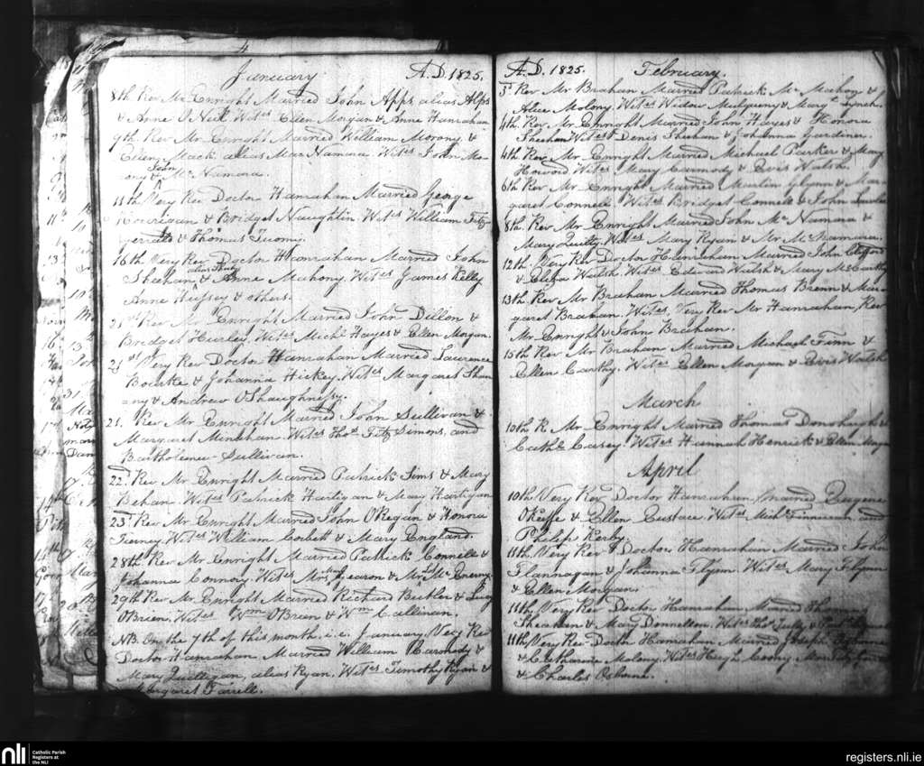 St. Mary's, Limerick city; County of Limerick; Diocese of Limerick. Marriages, Jan. 1825 to Apr. 1825