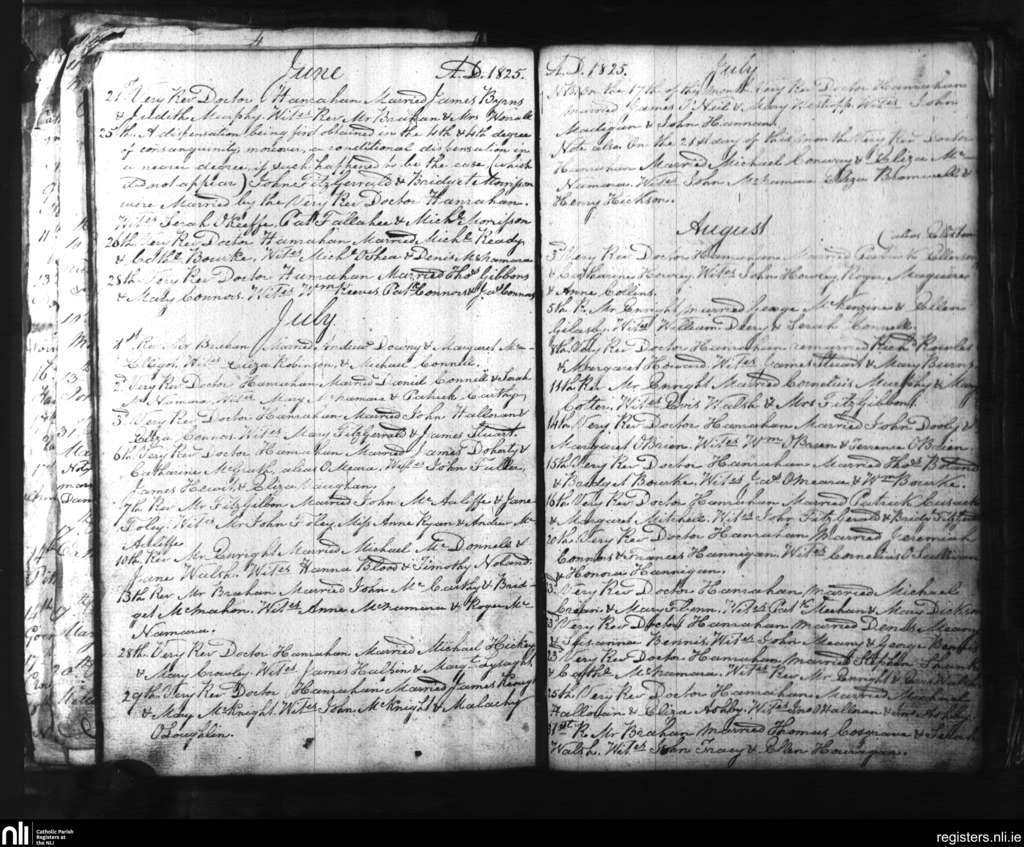 St. Mary's, Limerick city; County of Limerick; Diocese of Limerick. Marriages, June 1825 to Aug. 1825