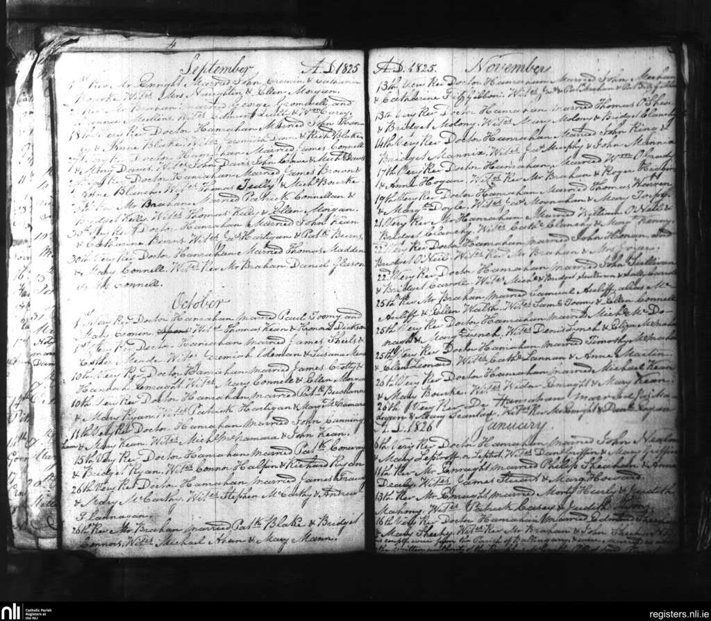 St. Mary's, Limerick city; County of Limerick; Diocese of Limerick. Marriages, Sep. 1825 to Jan. 1826