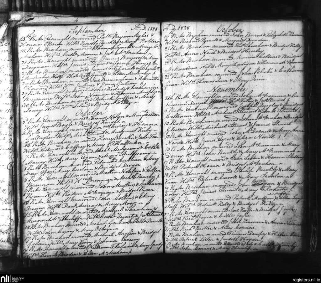 St. Mary's, Limerick city; County of Limerick; Diocese of Limerick. Marriages, Sep. 1828 to Nov. 1828