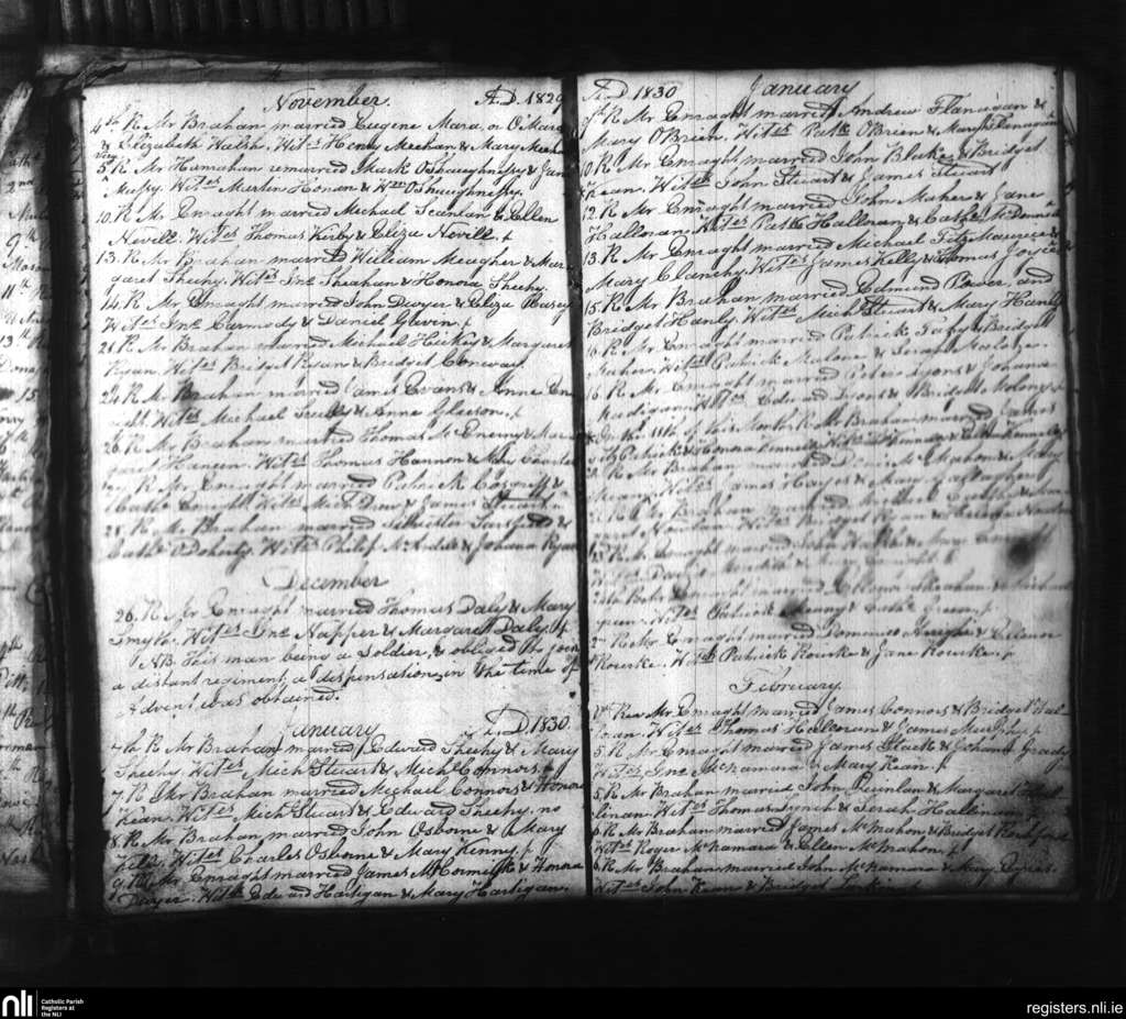 St. Mary's, Limerick city; County of Limerick; Diocese of Limerick. Marriages, Nov. 1829 to Feb. 1830