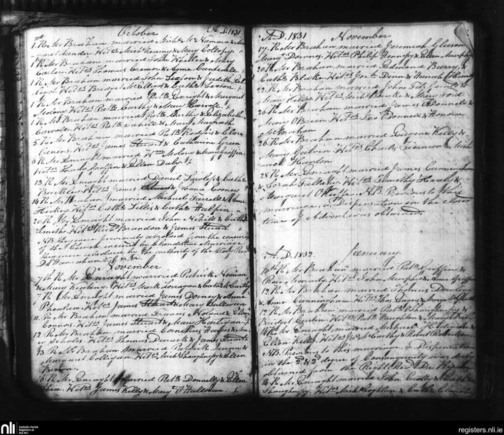 St. Mary's, Limerick city; County of Limerick; Diocese of Limerick. Marriages, Oct. 1831 to Jan. 1832