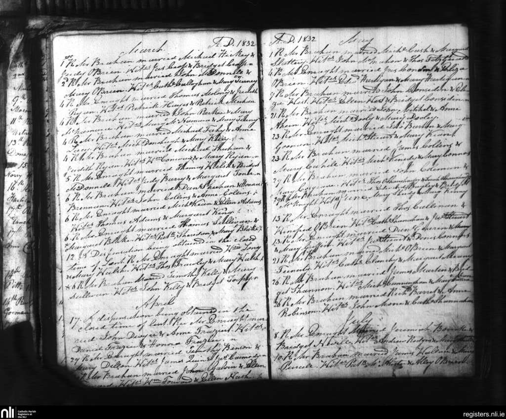 St. Mary's, Limerick city; County of Limerick; Diocese of Limerick. Marriages, Mar. 1832 to July 1832