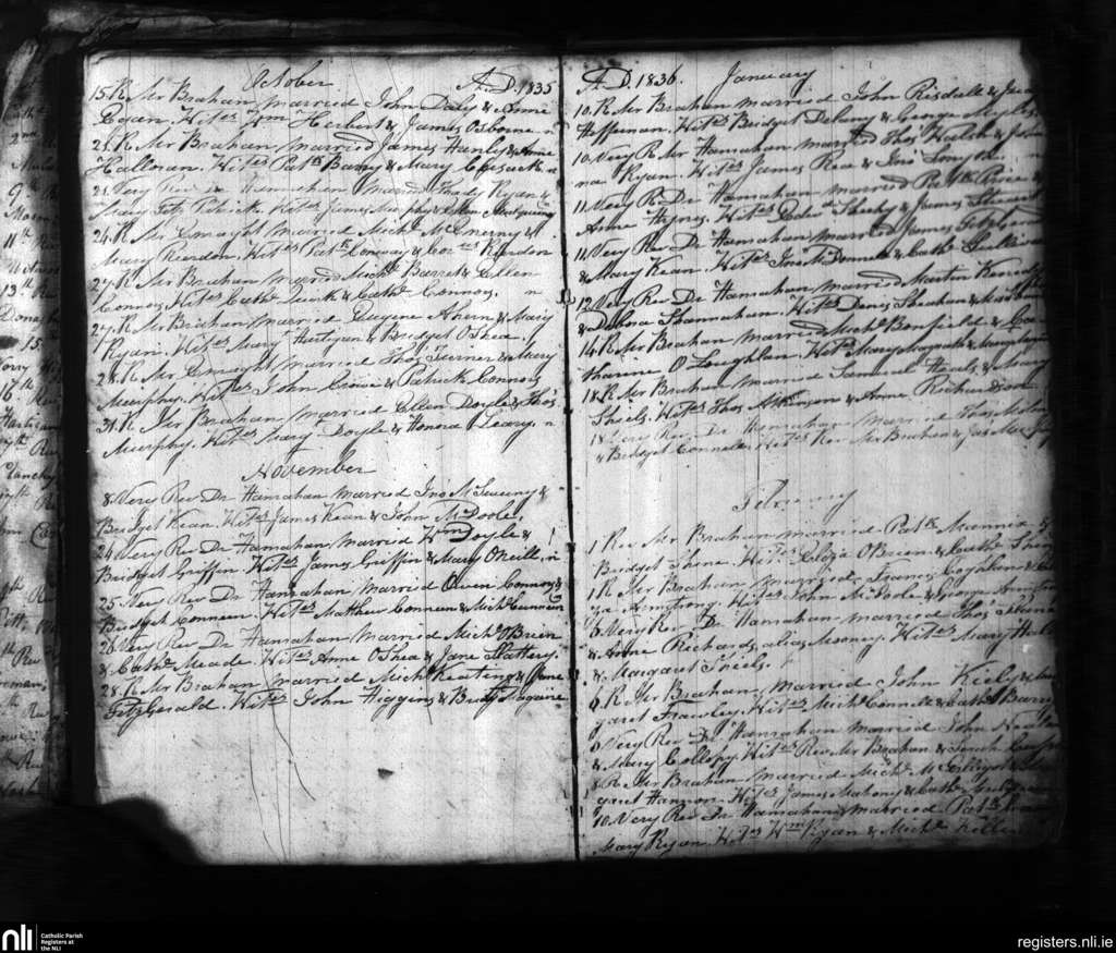 St. Mary's, Limerick city; County of Limerick; Diocese of Limerick. Marriages, Oct. 1835 to Feb. 1836