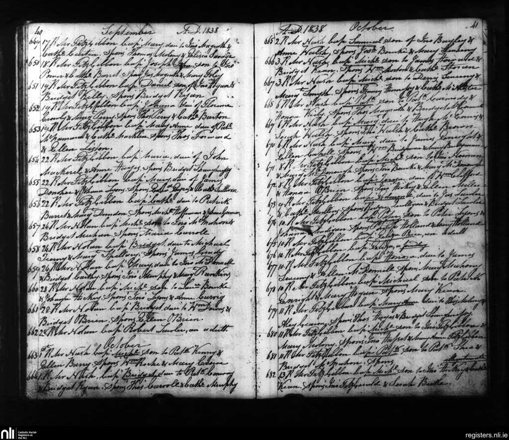 St. Mary's, Limerick city; County of Limerick; Diocese of Limerick. Baptisms, Sep. 1838 to Oct. 1838