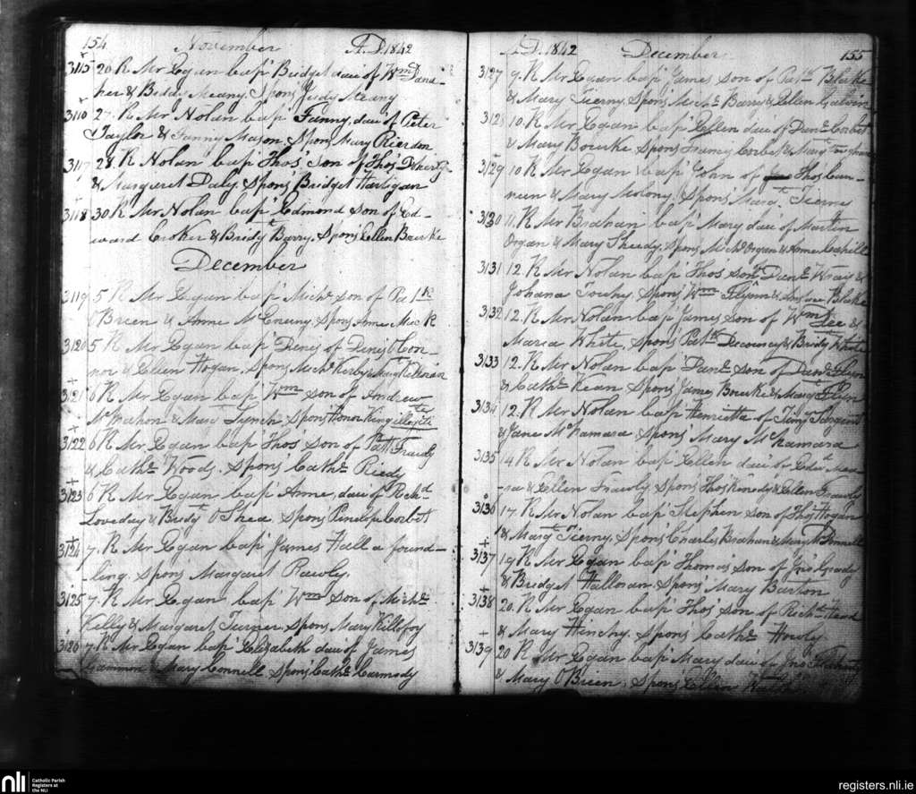 St. Mary's, Limerick city; County of Limerick; Diocese of Limerick. Baptisms, Nov. 1842 to Dec. 1842