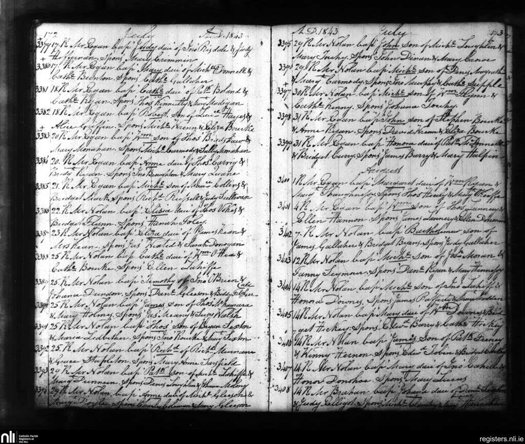 St. Mary's, Limerick city; County of Limerick; Diocese of Limerick. Baptisms, July 1843 to Aug. 1843