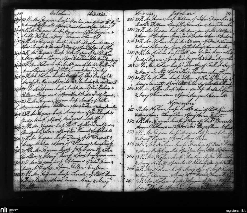 St. Mary's, Limerick city; County of Limerick; Diocese of Limerick. Baptisms, Oct. 1843 to Nov. 1843