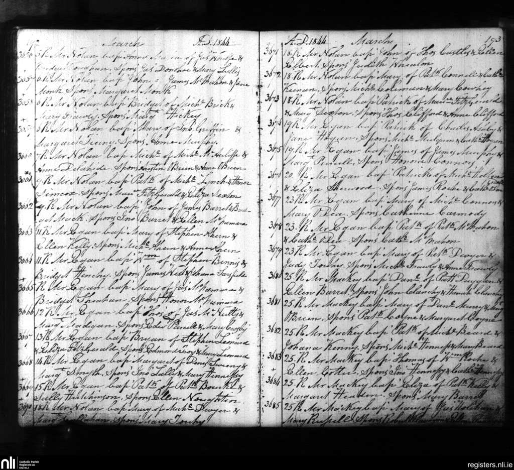 St. Mary's, Limerick city; County of Limerick; Diocese of Limerick. Baptisms, Mar. 1844