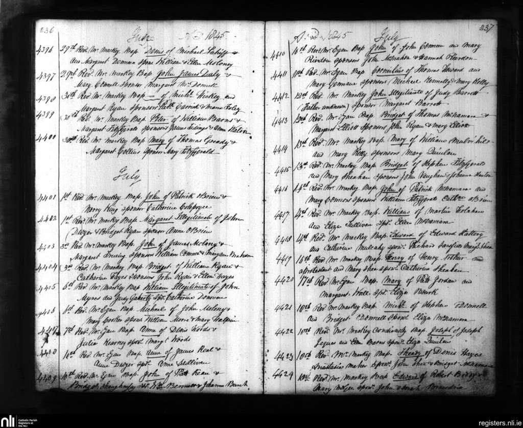 St. Mary's, Limerick city; County of Limerick; Diocese of Limerick. Baptisms, June 1845 to July 1845