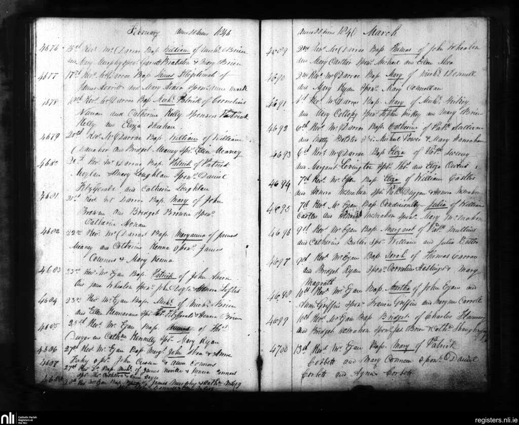 St. Mary's, Limerick city; County of Limerick; Diocese of Limerick. Baptisms, Feb. 1846 to Mar. 1846