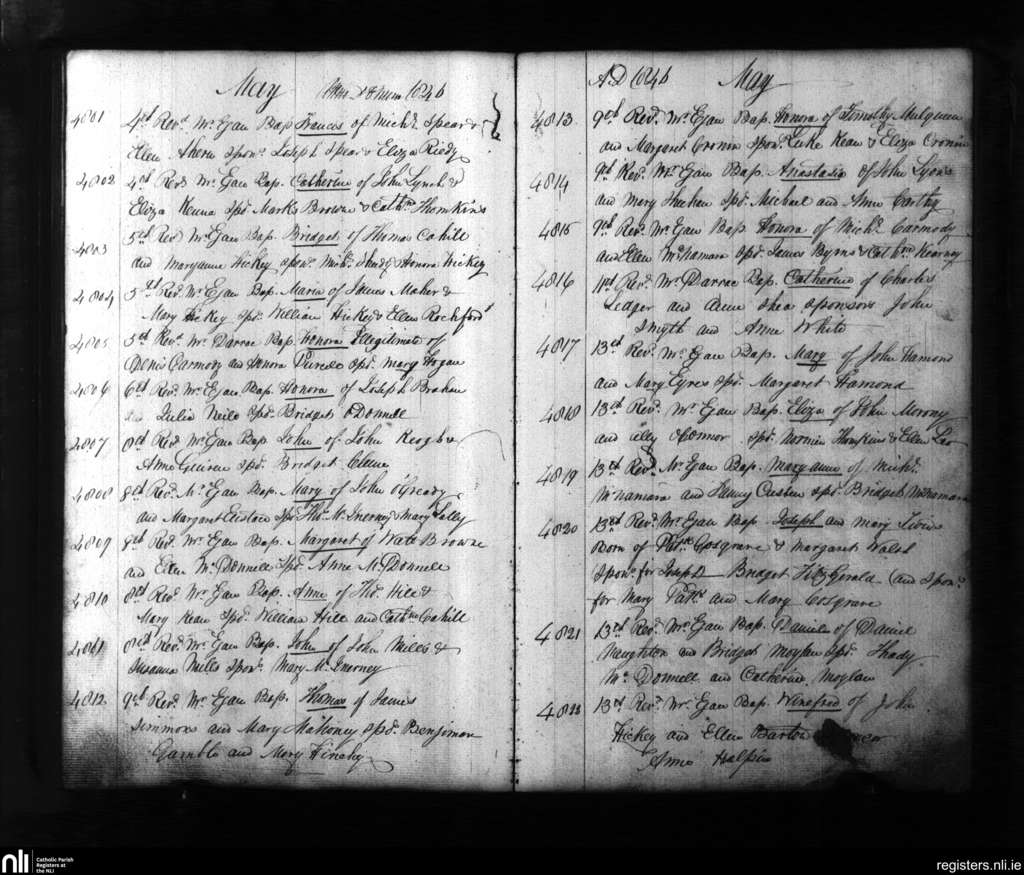 St. Mary's, Limerick city; County of Limerick; Diocese of Limerick. Baptisms, May 1846