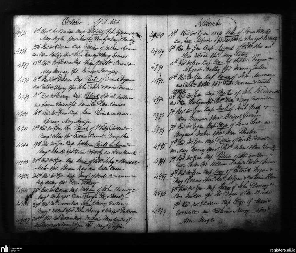 St. Mary's, Limerick city; County of Limerick; Diocese of Limerick. Baptisms, Oct. 1846 to Nov. 1846