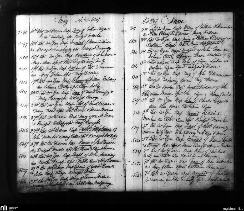 St. Mary's, Limerick city; County of Limerick; Diocese of Limerick. Baptisms, May 1847 to June 1847