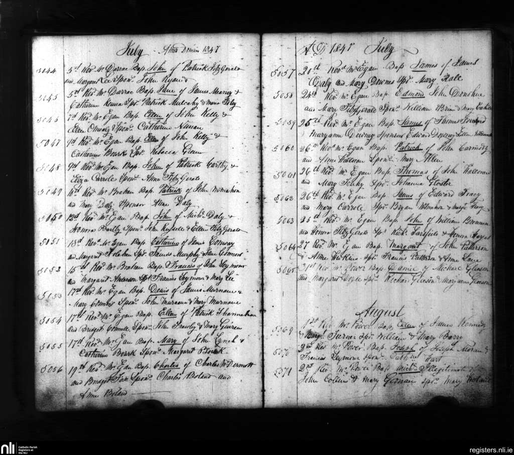 St. Mary's, Limerick city; County of Limerick; Diocese of Limerick. Baptisms, July 1847 to Aug. 1847