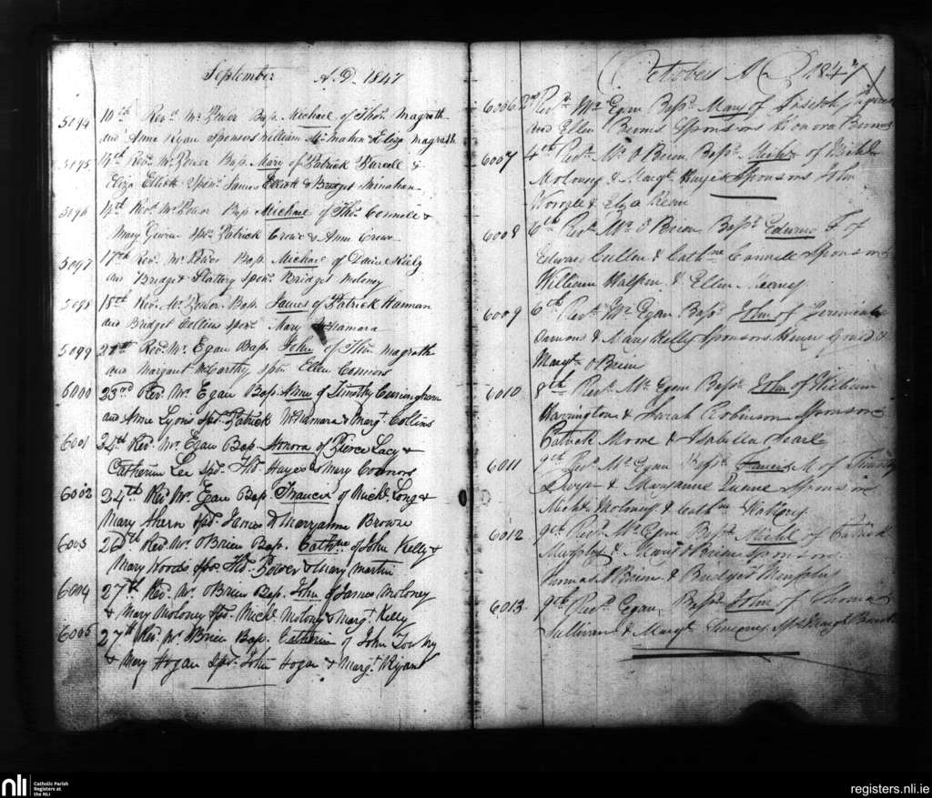 St. Mary's, Limerick city; County of Limerick; Diocese of Limerick. Baptisms, Sep. 1847 to Oct. 1847