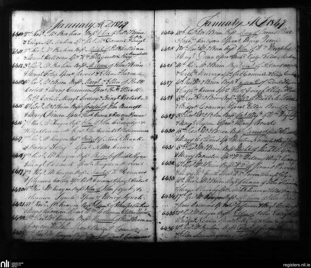 St. Mary's, Limerick city; County of Limerick; Diocese of Limerick. Baptisms, Jan. 1849