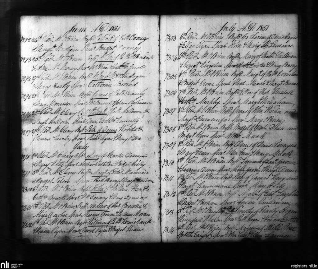 St. Mary's, Limerick city; County of Limerick; Diocese of Limerick. Baptisms, June 1851 to July 1851