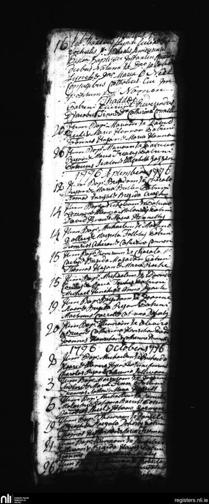 St. Michael's, Limerick city; County of Limerick; Diocese of Limerick. Baptisms, Aug. 1776 to Oct. 1776