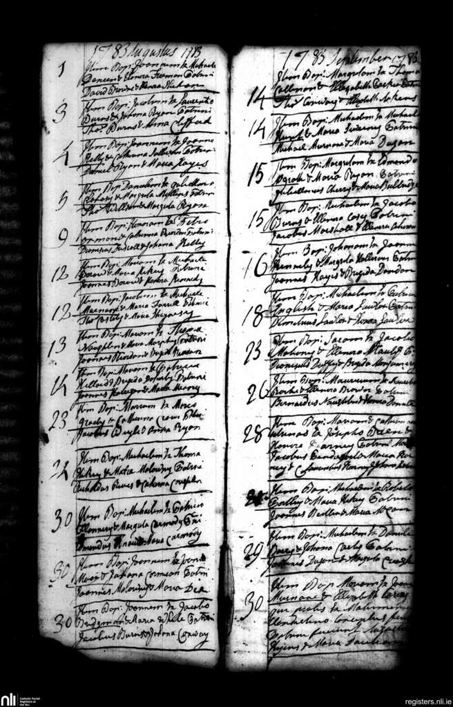 St. Michael's, Limerick city; County of Limerick; Diocese of Limerick. Baptisms, Aug. 1783 to Sep. 1783