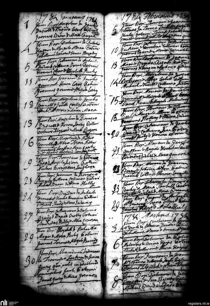 St. Michael's, Limerick city; County of Limerick; Diocese of Limerick. Baptisms, Jan. 1784 to Mar. 1784