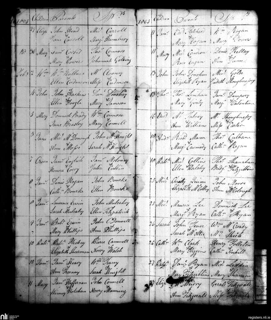 St. Michael's, Limerick city; County of Limerick; Diocese of Limerick. Baptisms, Jan. 1805 to Feb. 1805
