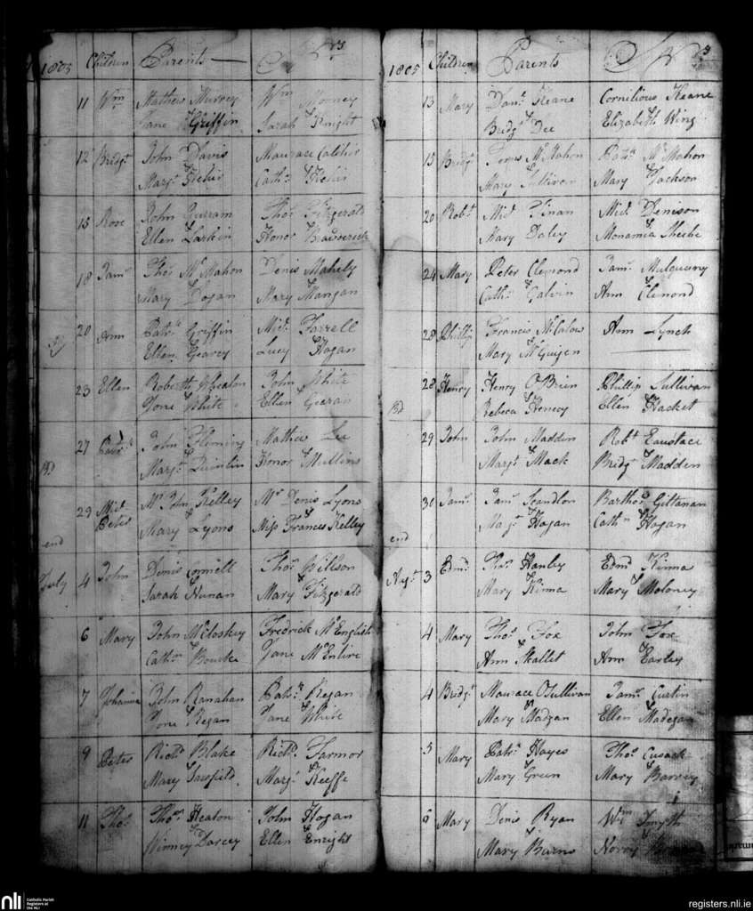 St. Michael's, Limerick city; County of Limerick; Diocese of Limerick. Baptisms, June 1805 to Aug. 1805