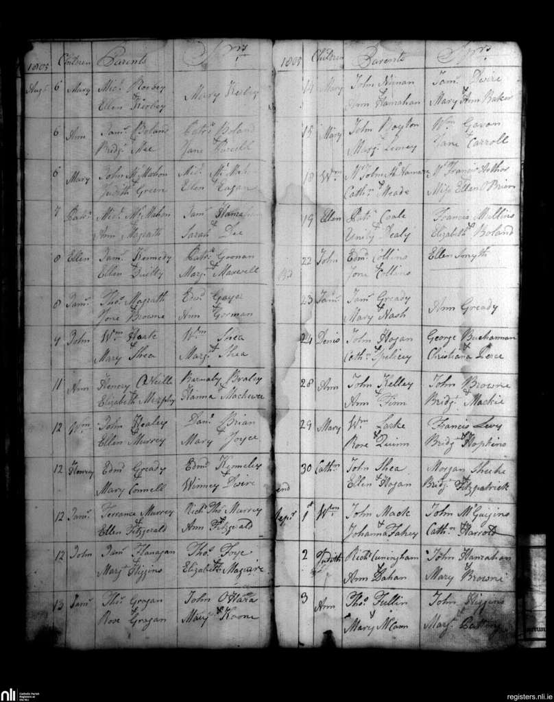 St. Michael's, Limerick city; County of Limerick; Diocese of Limerick. Baptisms, Aug. 1805 to Sep. 1805