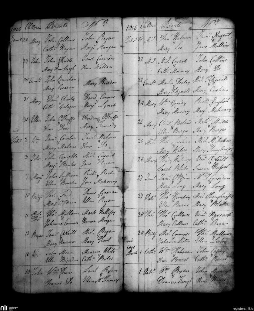 St. Michael's, Limerick city; County of Limerick; Diocese of Limerick. Baptisms, Jan. 1806 to Mar. 1806