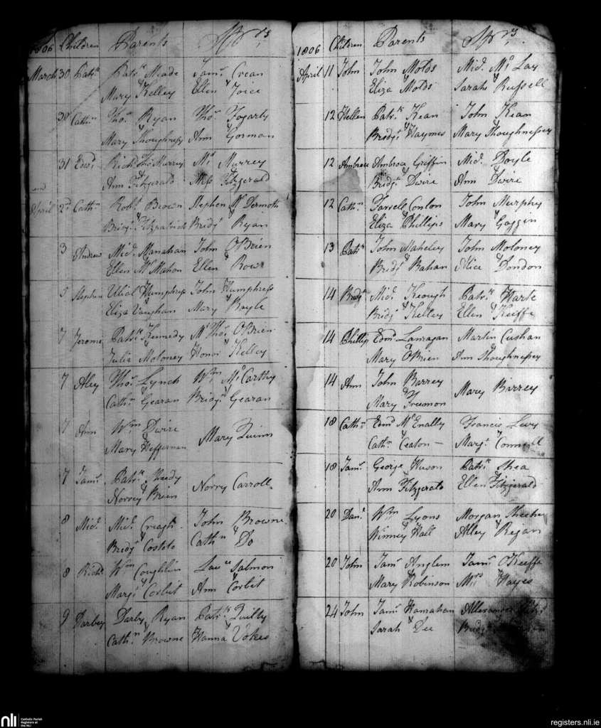 St. Michael's, Limerick city; County of Limerick; Diocese of Limerick. Baptisms, Mar. 1806 to Apr. 1806